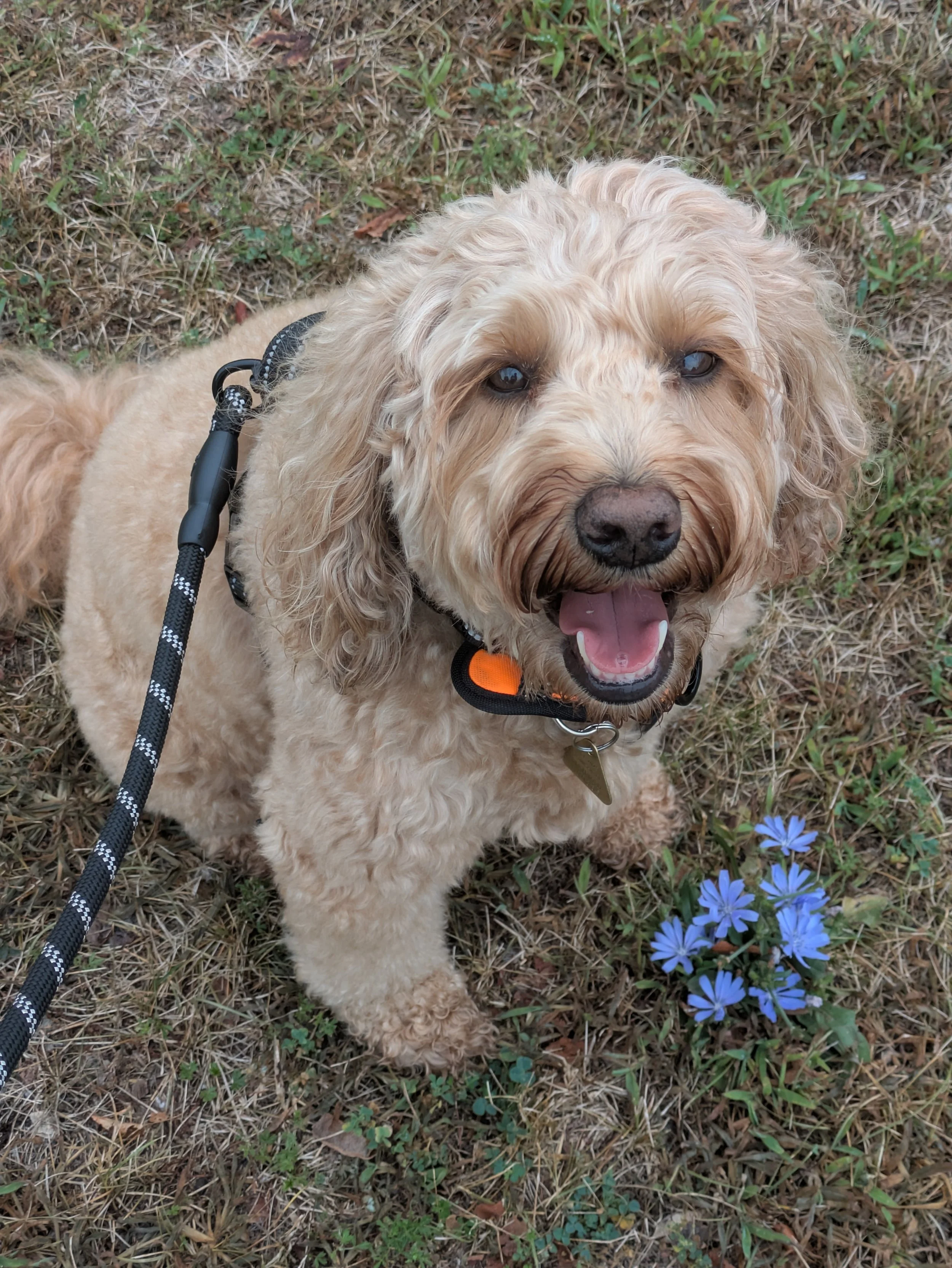 His soft, curly fur shines brilliantly in the warm sunlight, spreading joy and excitement wherever he goes.